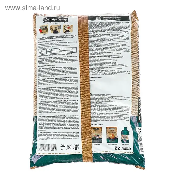 Грунт универсальный Огородник 22 л.