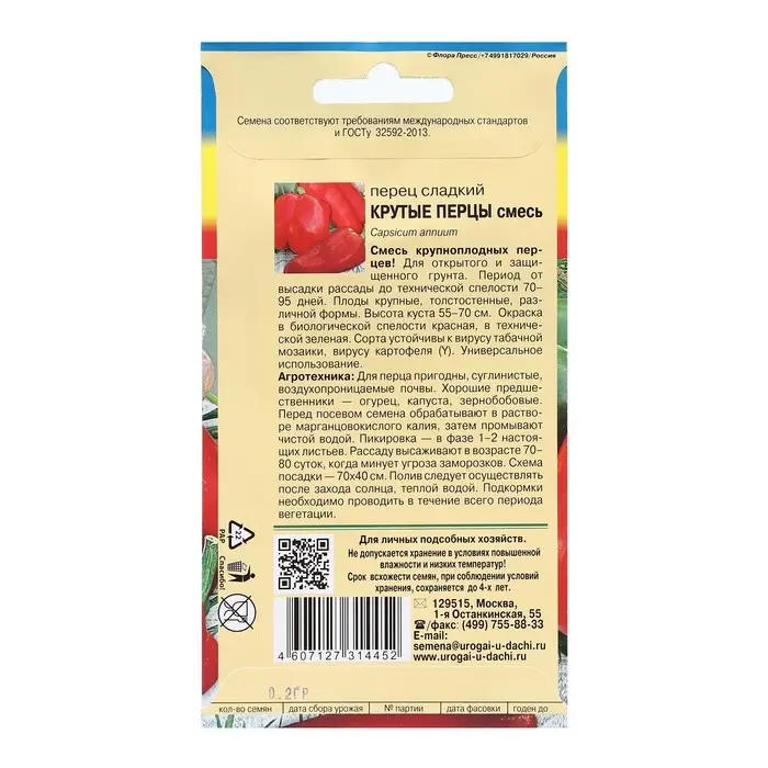 Смесь крупноплодных перцев! Для открытого и защищенного грунта. Период от высадки рассады до технической спелости 70-95 дней. Плоды крупные, толстостенные, различной формы. Высота куста 55-70 см. Окраска в биологической спелости красная, в технической зеленая. Сорта устойчивы к вирусу табачной мозаики, вирусу картофеля (Y). Универсальное использование.