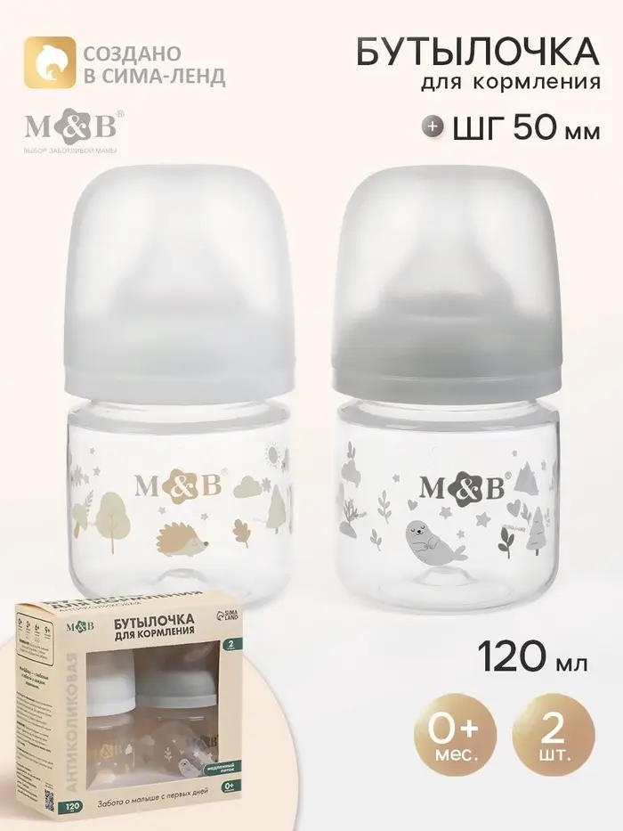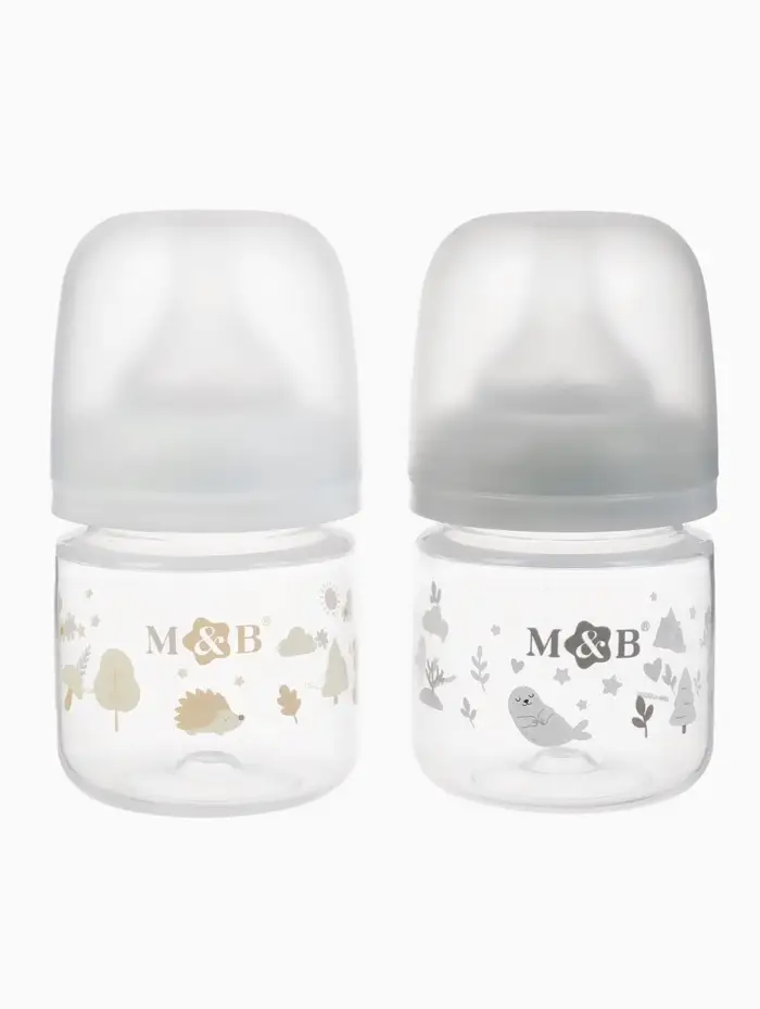Бутылочка для кормления, широкое горло Ø50 мм, +0мес., 120 мл, набор 2 шт. M&B