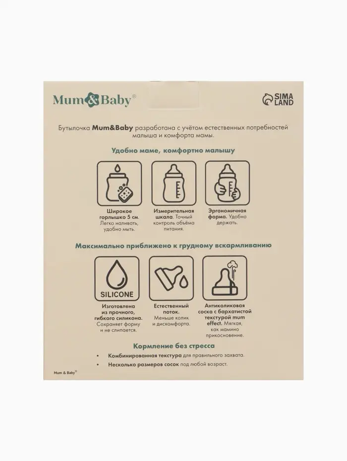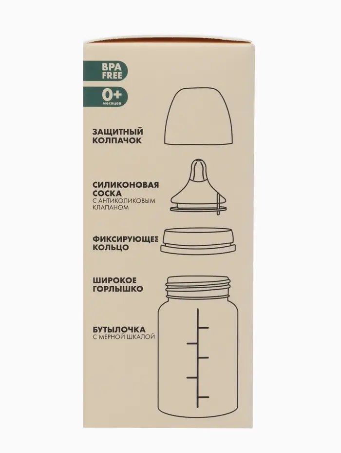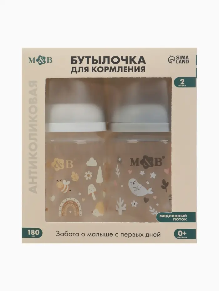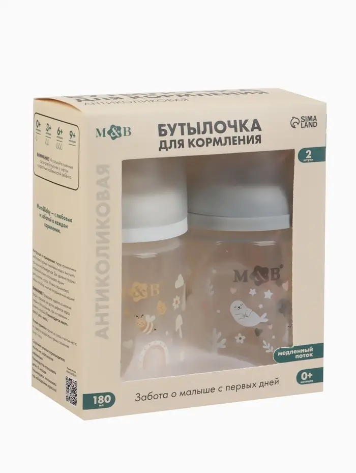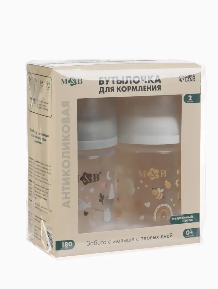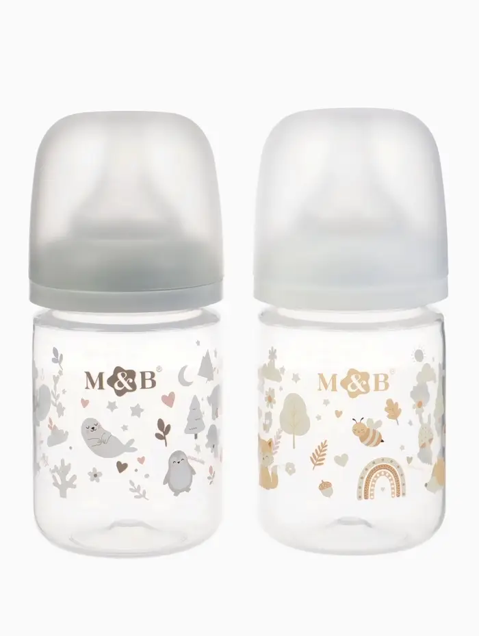 Бутылочка для кормления M&B, ШГ Ø50 мм, +0мес., 180 мл., набор 2 шт. в кор.