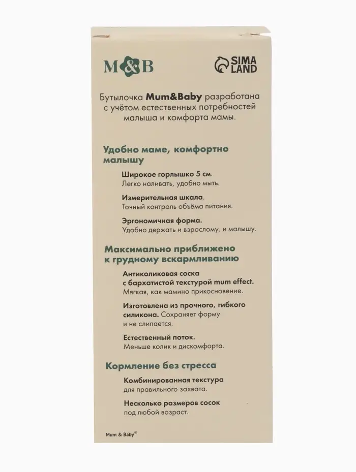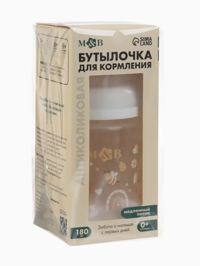 Бутылочка для кормления M&B, ШГ Ø50 мм, +0мес., 180 мл.