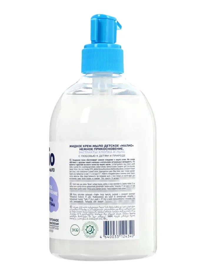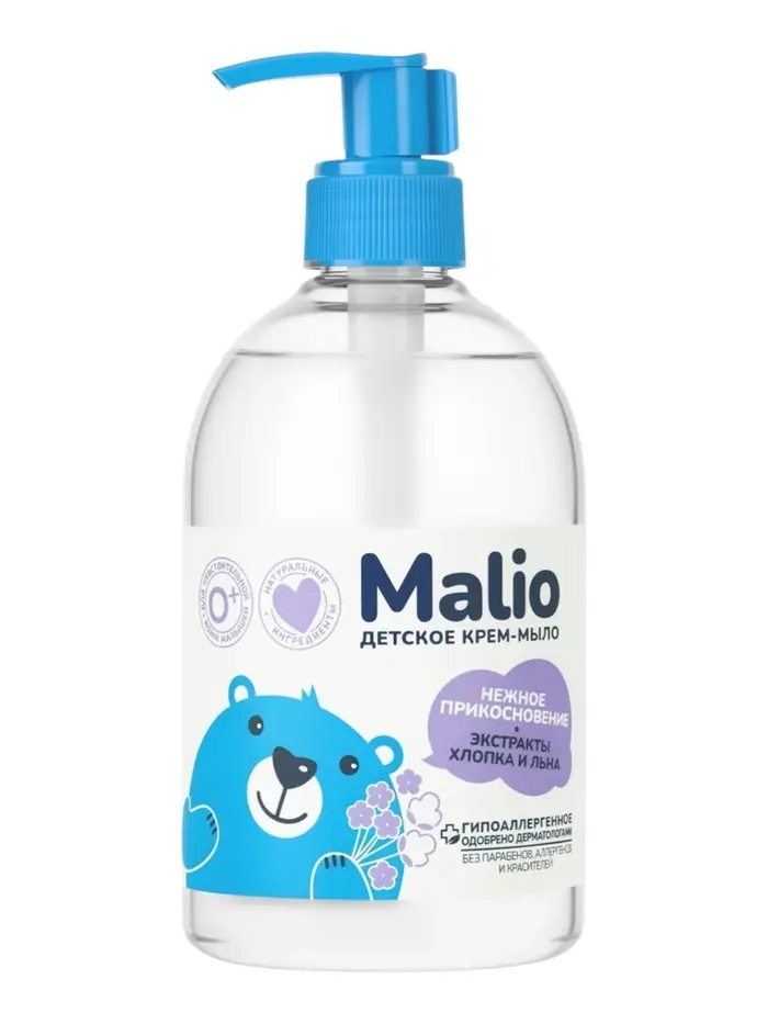 Жидкое крем-мыло «Малио» с экстрактом хлопка и льна создано специально для бережного ухода за нежной кожей малышей. Его мягкая формула бережно очищает кожу, удаляя загрязнения и излишки жира, при этом не пересушивая эпидермис. Крем-мыло обогащено натуральными растительными экстрактами, которые смягчают и увлажняют кожу, обеспечивая комфорт и защиту от раздражений.