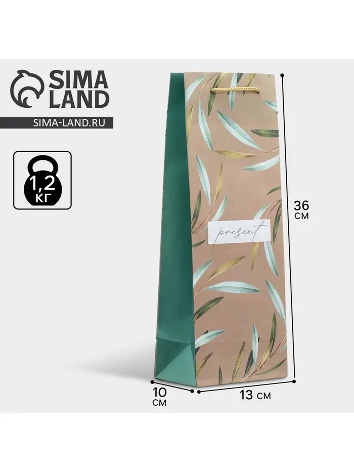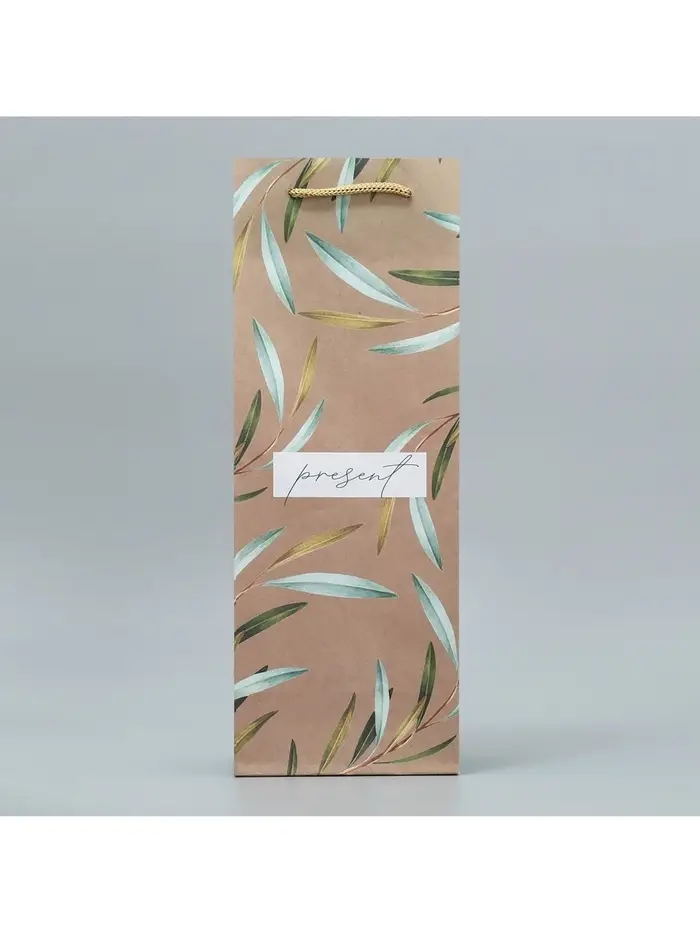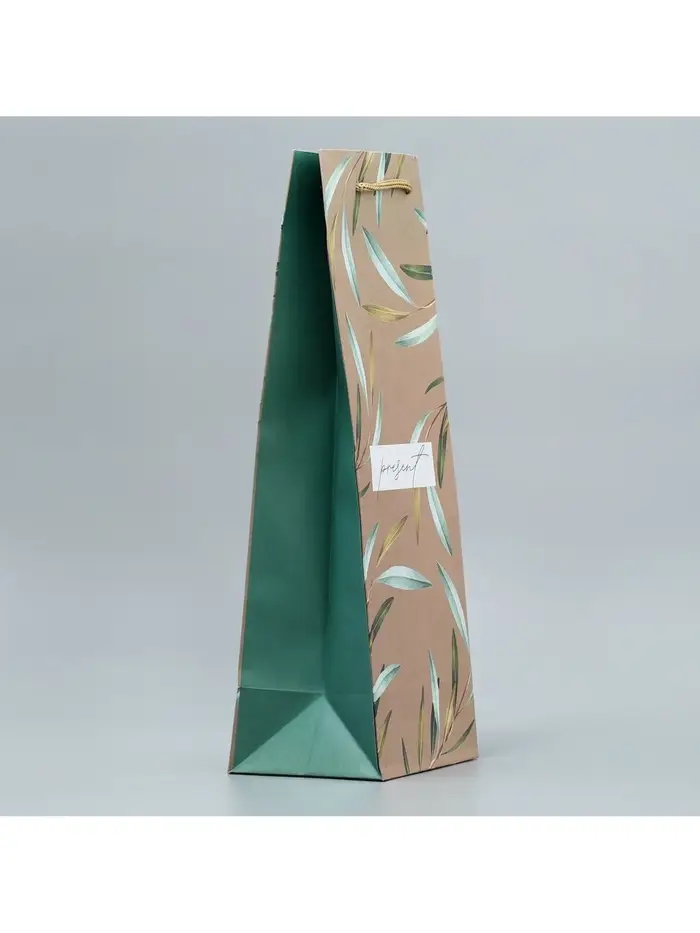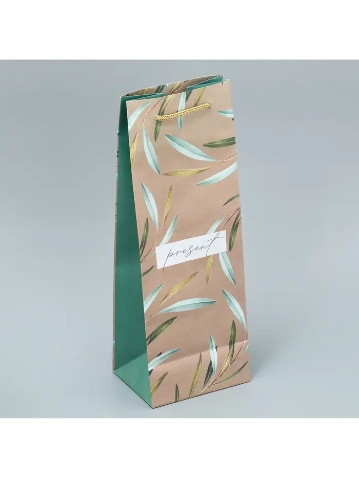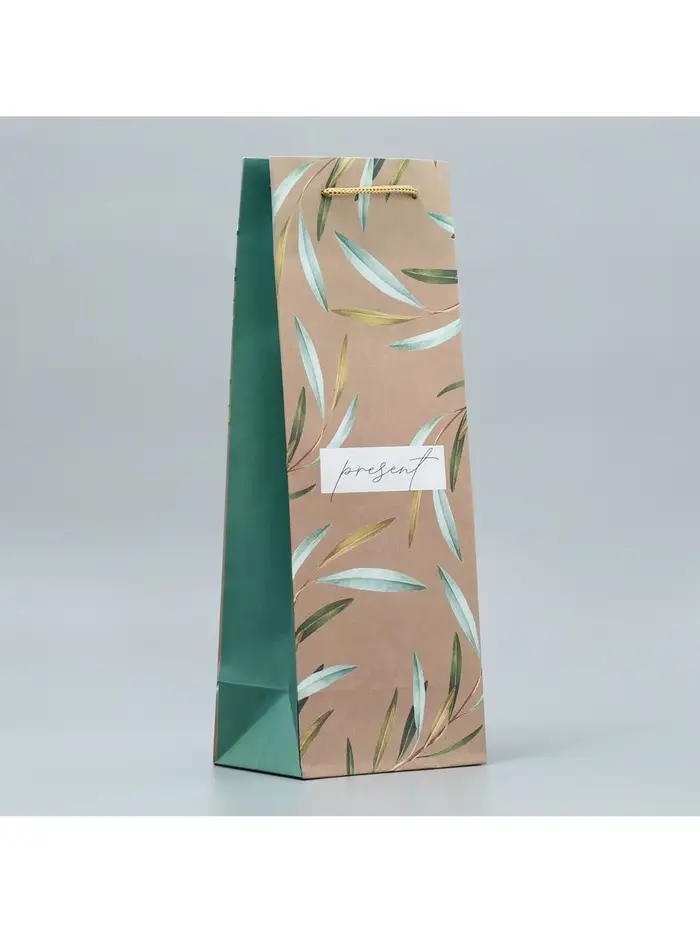 Пакет подарочный под бутылку, упаковка, Present, 36 х 13 х 10 см