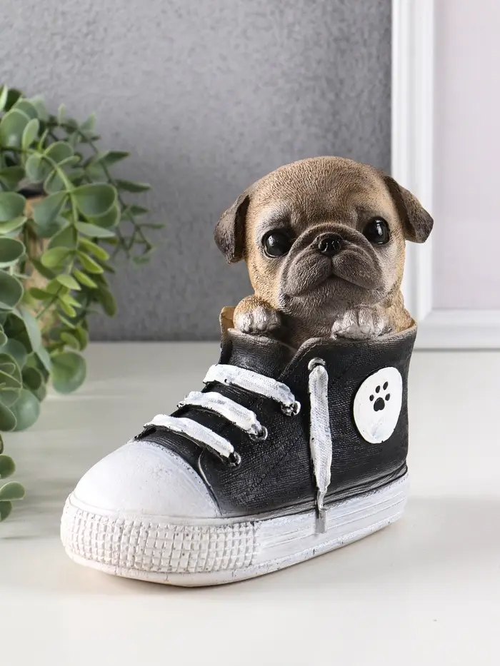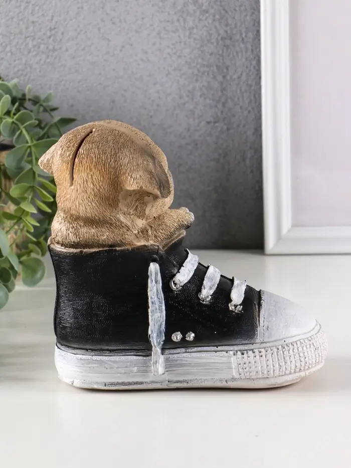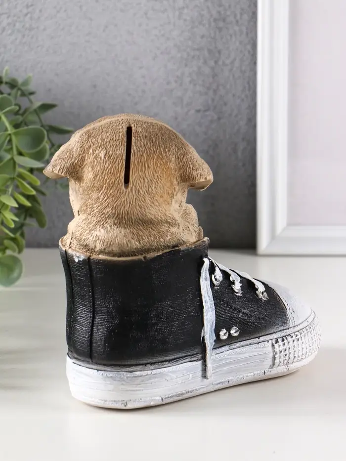 Выбор этой копилки — это решение за стиль и комфорт. Она не только поможет организовать ваши сбережения, но и станет изюминкой вашего пространства, привлекая восхищённые взгляды гостей. Позвольте этому очаровательному кеду со щенком мопса стать частью вашего дома, подчеркнув вашу индивидуальность и внимание к деталям.