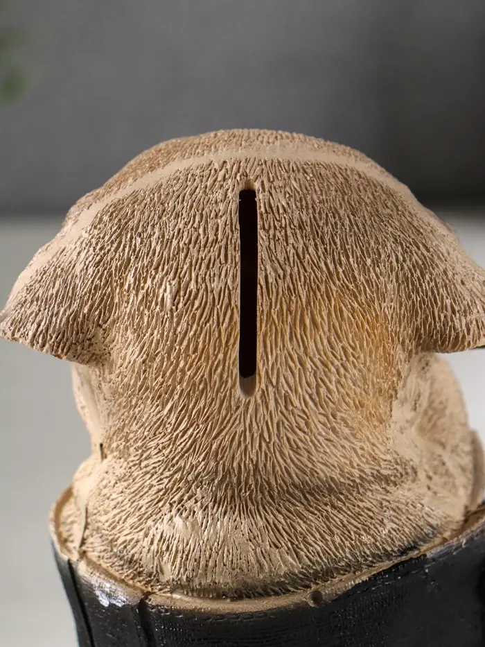 Копилка изготовлена из высококачественного полистоуна с покрытием краской, что гарантирует долговечность и устойчивость к внешним воздействиям. Компактные размеры (15.5×17×8 см) позволяют легко разместить её на полке, столе или в любой зоне вашего дома, где требуется добавить немного тепла и позитива.
