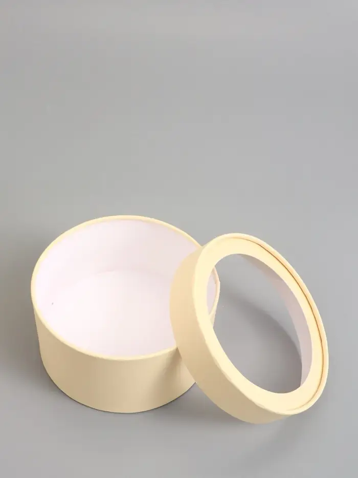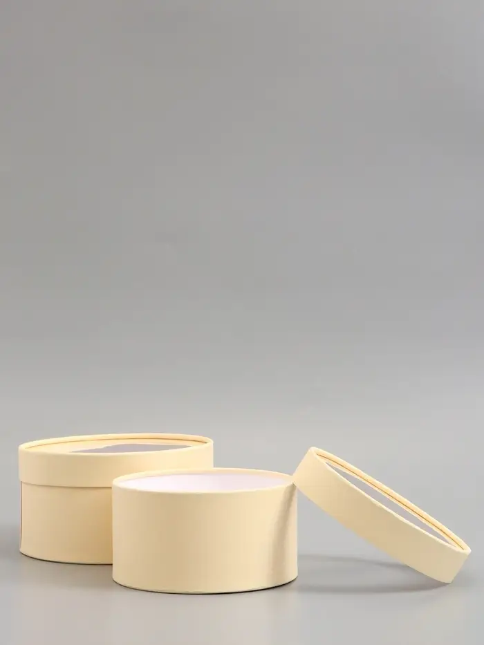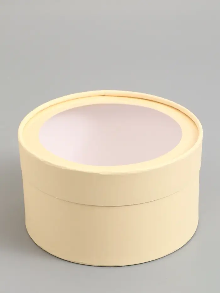 Набор подарочных коробок 2 в 1 круглых, сливочная, с окном, 21 х 11 - 18 х 10 см