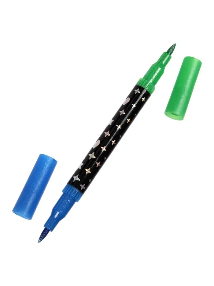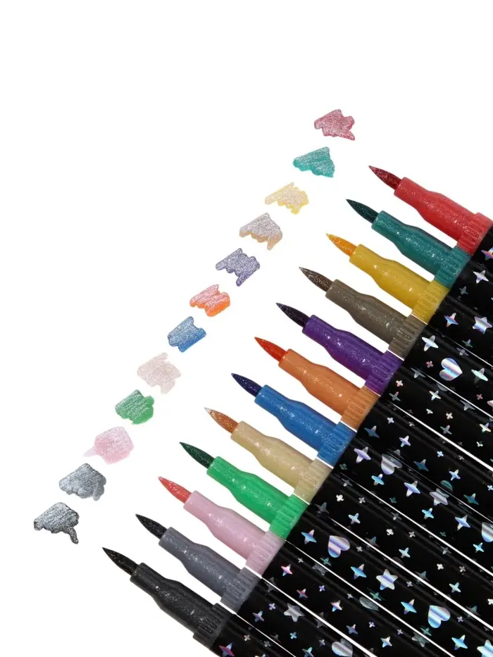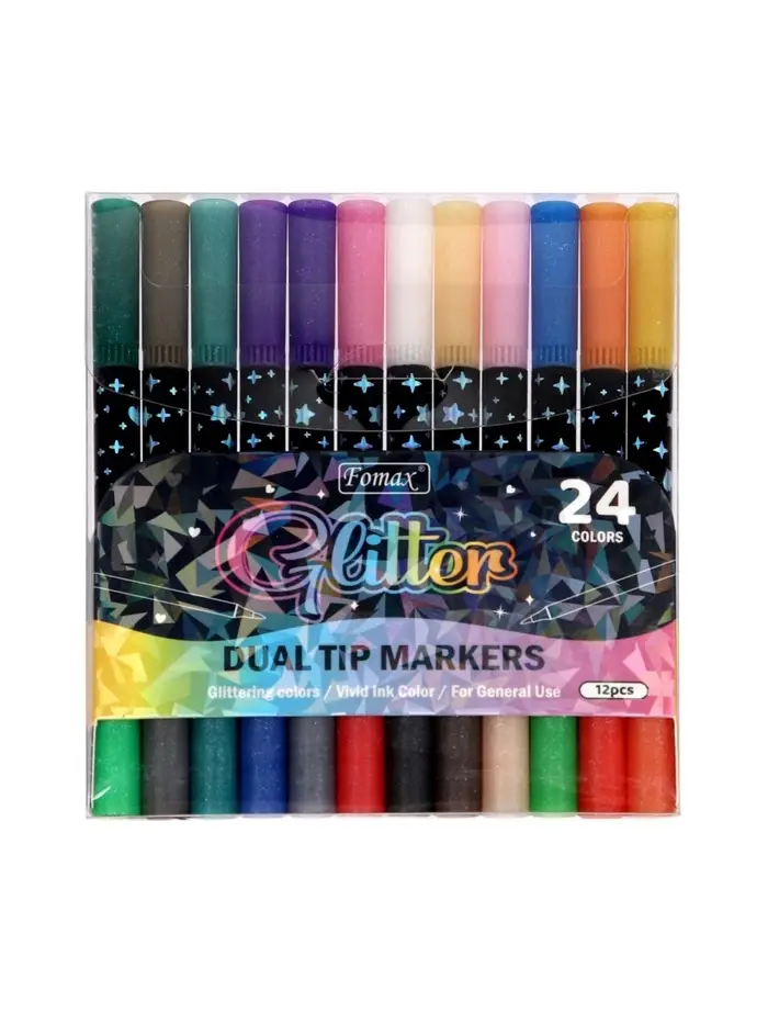 Фломастеры 12 штук, 24 цвета, с блёстками, двусторонние, в пластиковой коробке