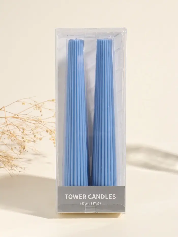 Набор свечей, 3.5х23 см, 2 шт "Башня" тёмно-синий 4х9,5х25 см