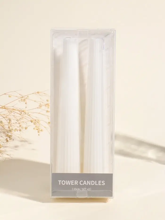 Набор свечей, 3.5х23 см, 2 шт "Башня" белый 4х9,5х25 см