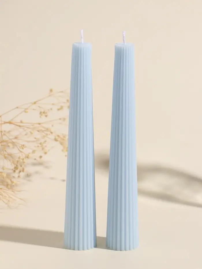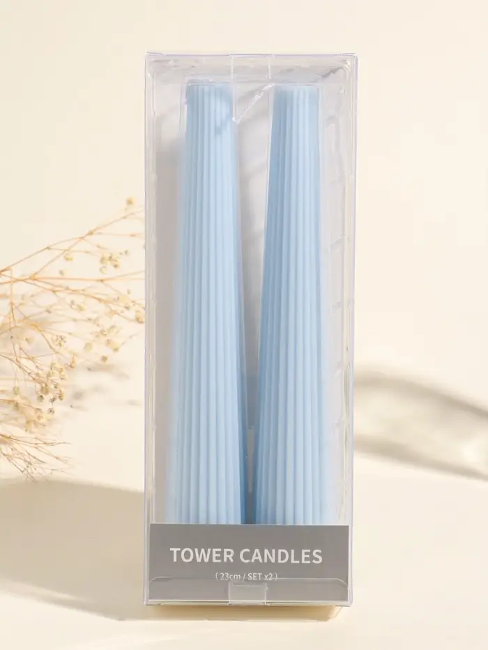 Набор свечей, 3.5х23 см, 2 шт "Башня" светло-голубой 4х9,5х25 см