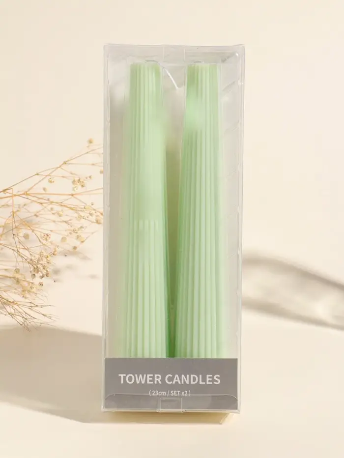 Набор свечей, 3.5х23 см, 2 шт "Башня" светло-зелёный 4х9,5х25 см