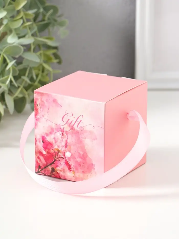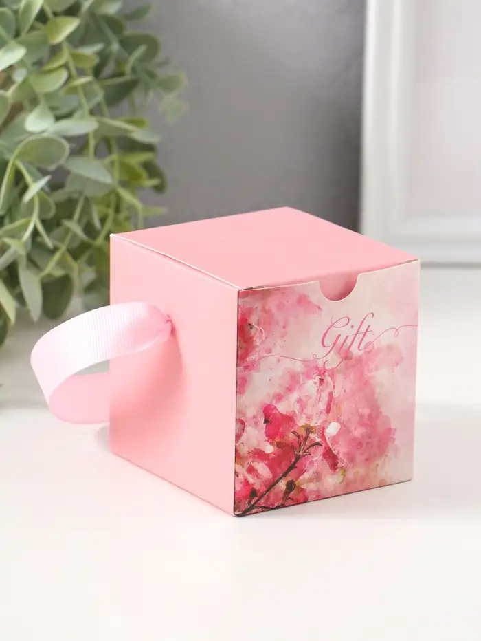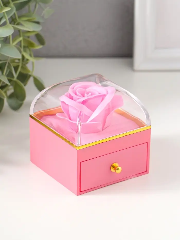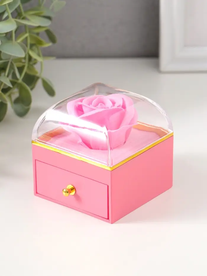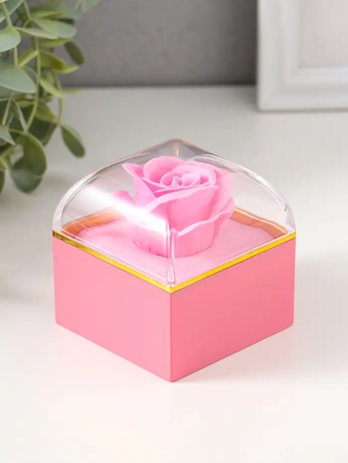 Шкатулка пластик "Роза в футляре" розовая 6,8х6,8х7,5 см
