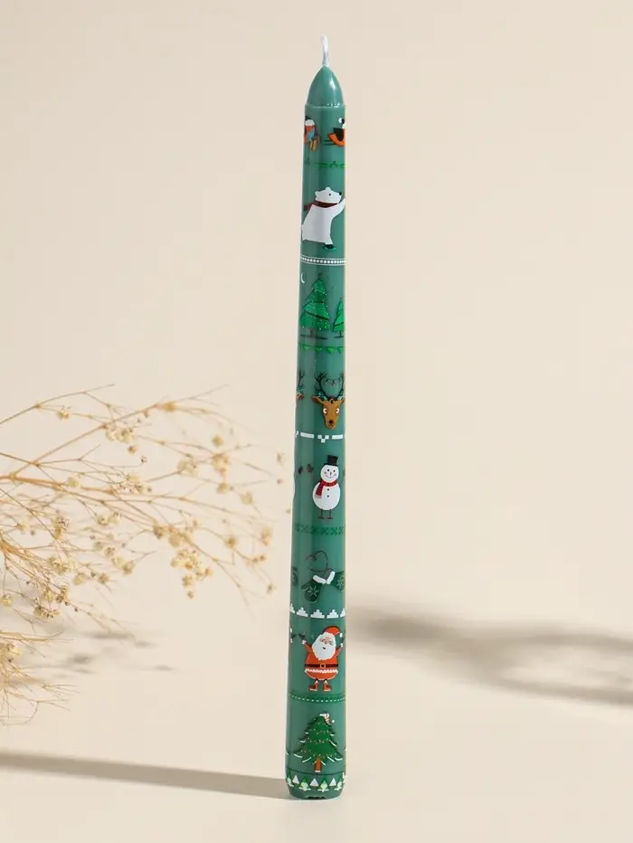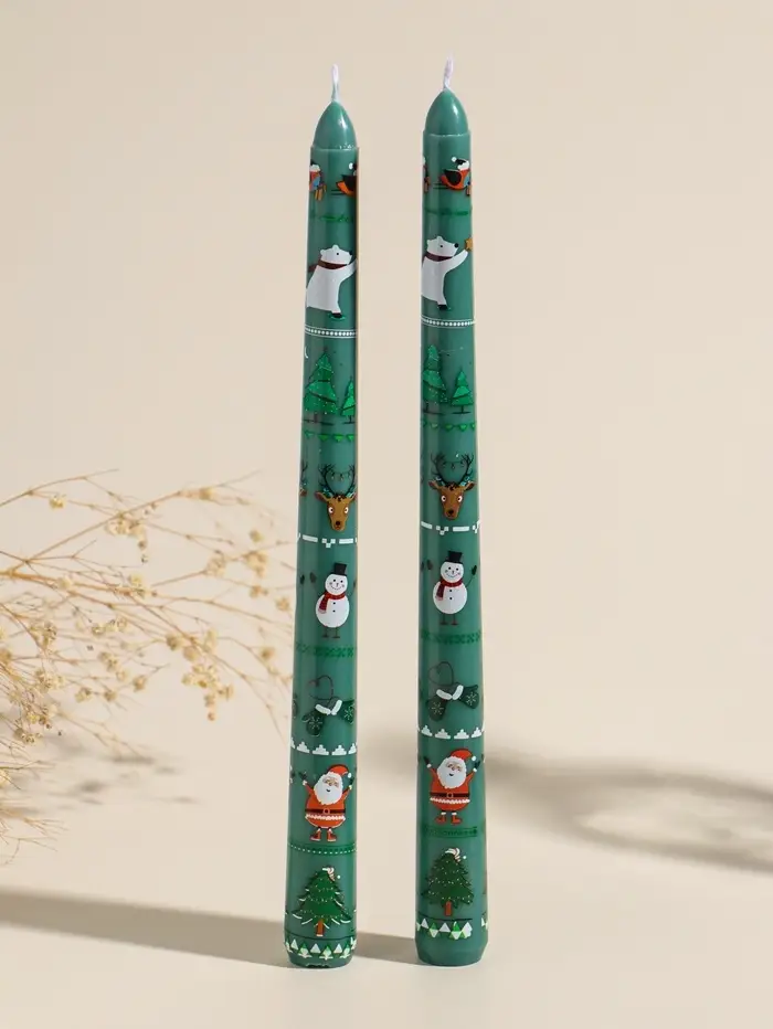 Набор свечей античных, 2,2х25 см, 2 шт "Новогодние персонажи" зелёные 8х28х2,3 см