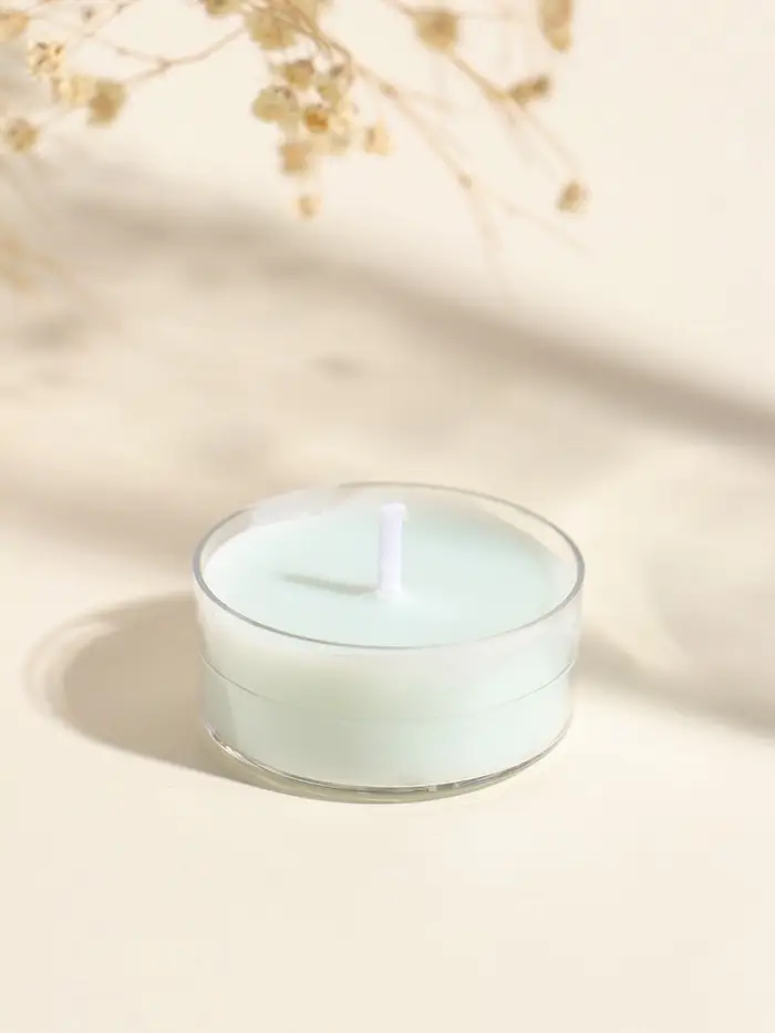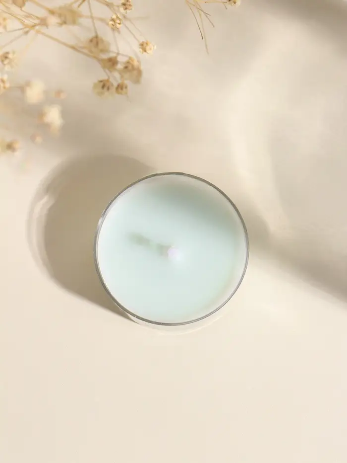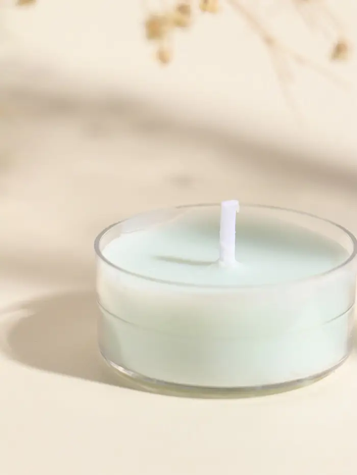 Чайная свеча ароматическая "Круглая" светло-голубая, аромат древесный 3,8х3,8х1,8 см
