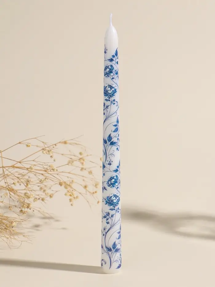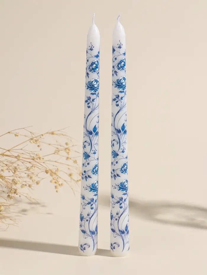 Набор свечей античных, 2,2х25 см, 2 шт "Пионы" сине-белые 8х28х2,3 см