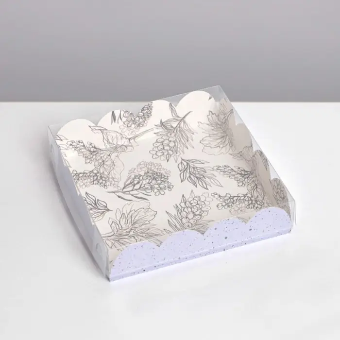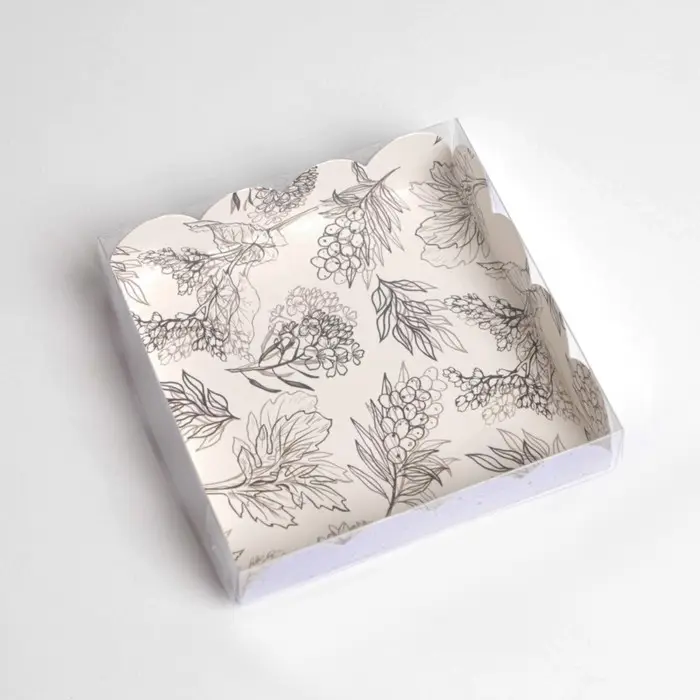 Коробка для печенья, кондитерская упаковка с PVC крышкой, «Грозди», 13 х 13 х 3 см