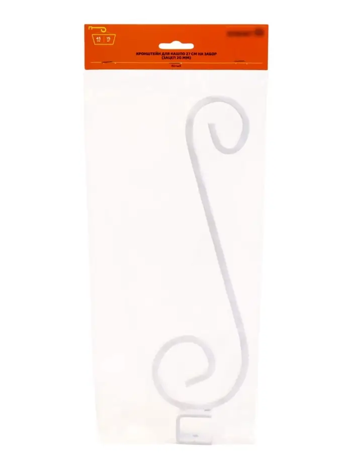 Кронштейн для кашпо навесной 27 см (забор, перила, козырьки) металл (зацеп 20 мм / 25 мм), белый 109