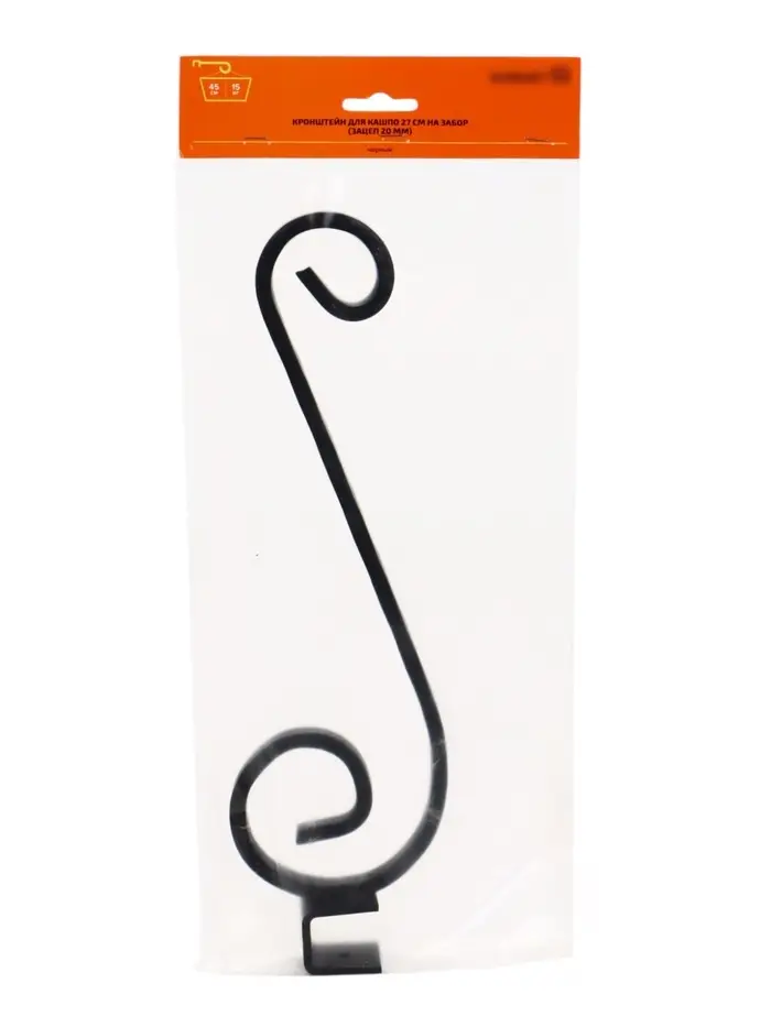 Кронштейн для кашпо навесной 27 см (забор, перила, козырьки) металл (зацеп 20 мм / 25 мм), черный 10