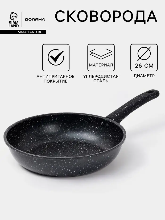 Сковорода Доляна Black Rock, d=26 см, ручка софт тач, антипригарное покрытие, чёрная