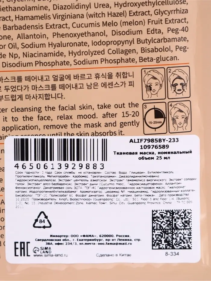 Успокаивающая маска для лица Sadoer "Дыня", 25 мл