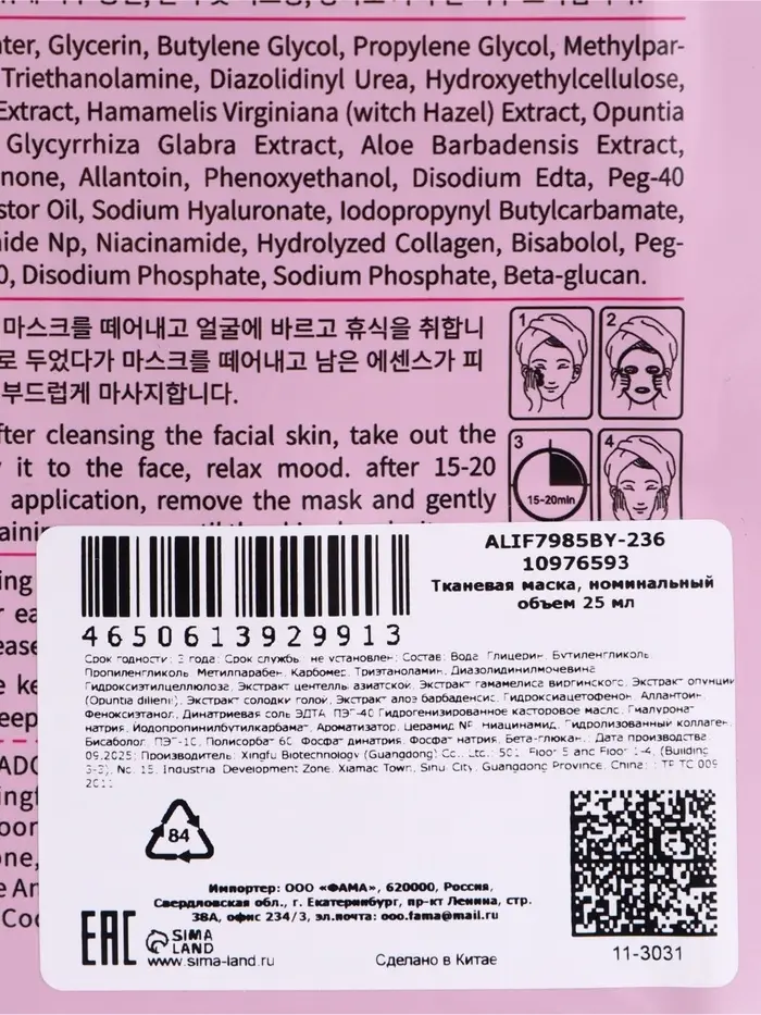 Успокаивающая маска для лица Sadoer "Драгон фрукт", 25 мл