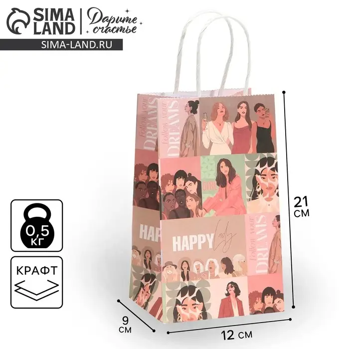 Пакет подарочный крафтовый, упаковка, «Стиль», 12 х 21 х 9 см