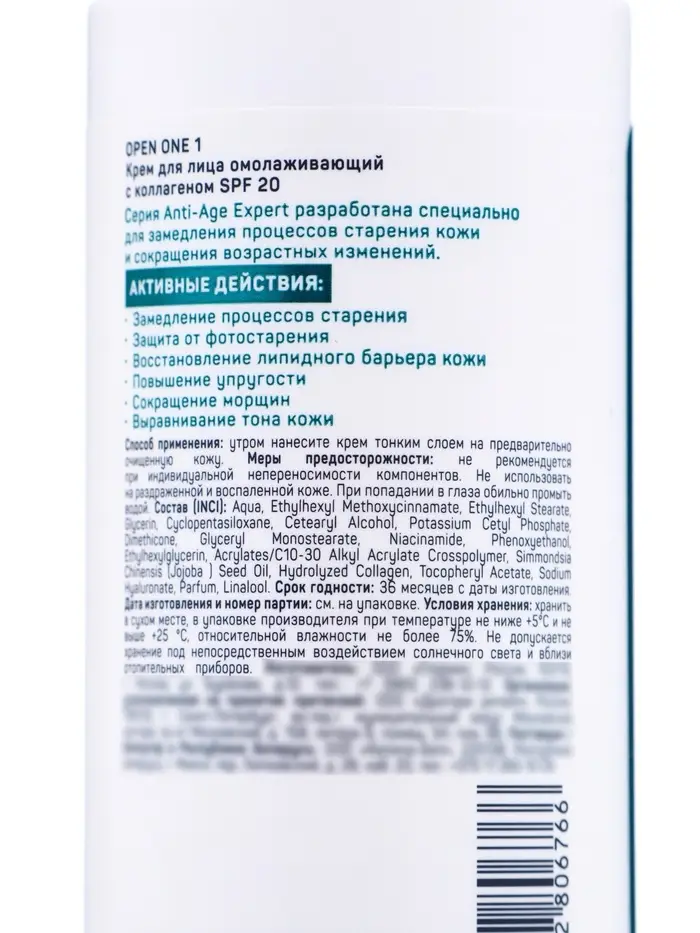 Крем для лица Open One 1, с коллагеном, SPF 20, 100 мл