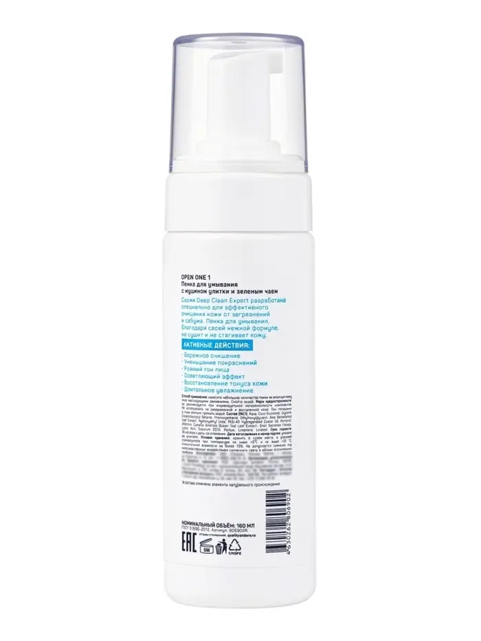 Пенка‑мусс для лица Open One 1, с зелёным чаем, 160 мл