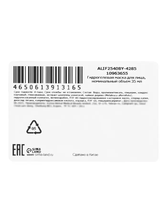 Гидрогелевая маска с экстрактом чайного дерева, 35 мл