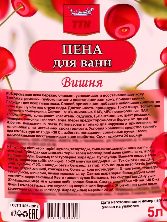 Пена для ванн TITAN вишня, 5 л