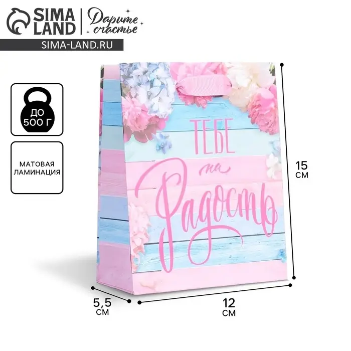 Пакет подарочный ламинированный, упаковка, «Тебе на радость», S 12 х 15 х 5.5 см