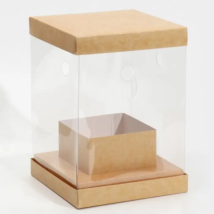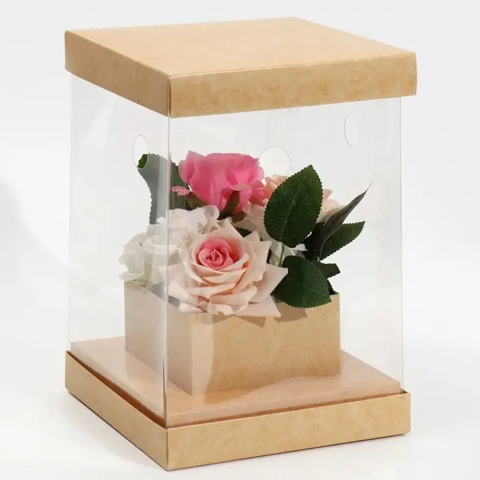 Коробка подарочная для цветов с вазой и PVC окнами складная, упаковка, «Крафт», 16 х 23 х 16 см