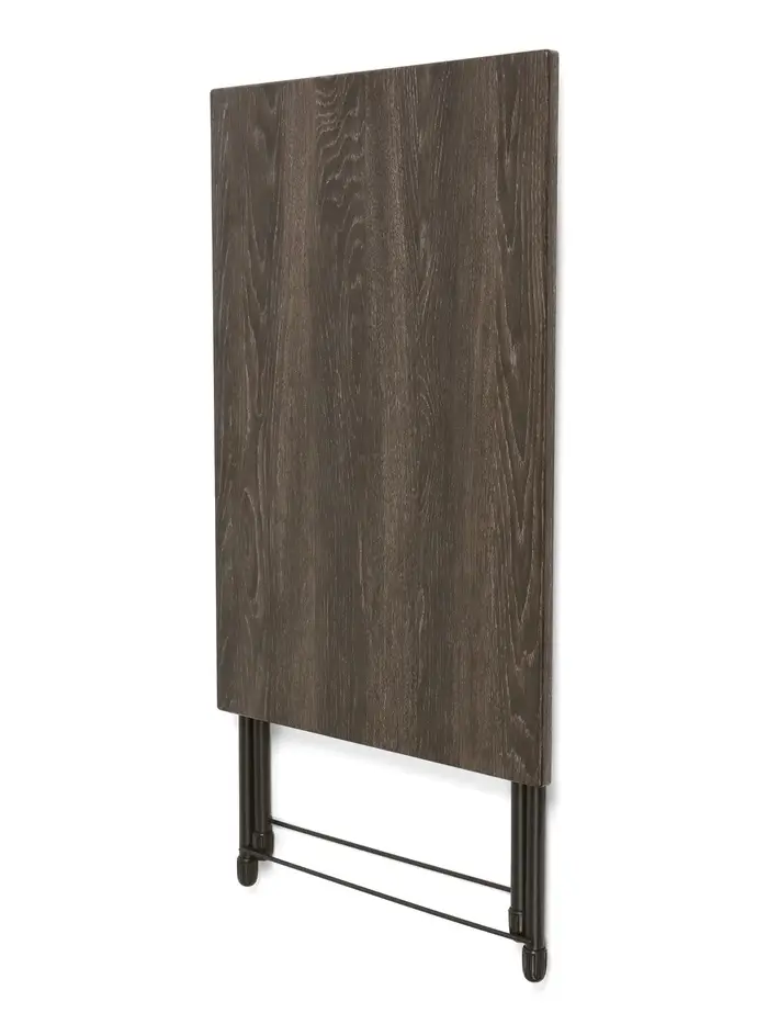 Столешница из МДФ выполнена в благородном оттенке «дуб шале дымчатый» с фактурой под натуральное дерево, что придаёт изделию эстетичный внешний вид. Матовый чёрный каркас обеспечивает прочность и устойчивость конструкции. Модель имеет 2 положения высоты – 50 см и 62 см, позволяя адаптировать стол под различные задачи.