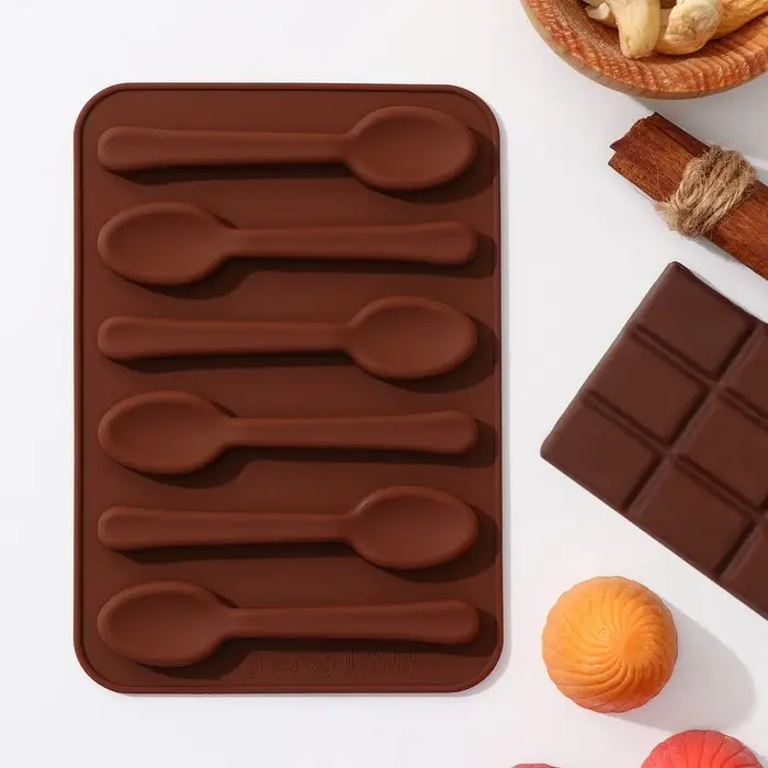 Форма для шоколада Доляна «Ложечки», силикон, 13,5×9,5×0,7 см, 6 ячеек (8,3×1,8 см), цвет коричневый