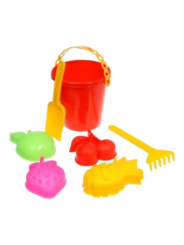 Набор для игры в песке (Ведро 1л, 4 формочки фрукты-ягоды, грабельки и лопатка)
