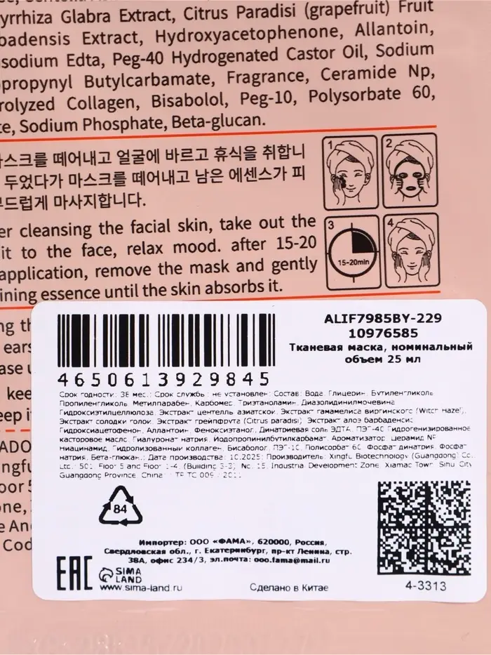 Успокаивающая маска для лица Sadoer "Грейпфрут", 25 мл