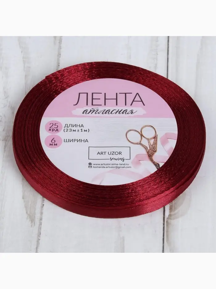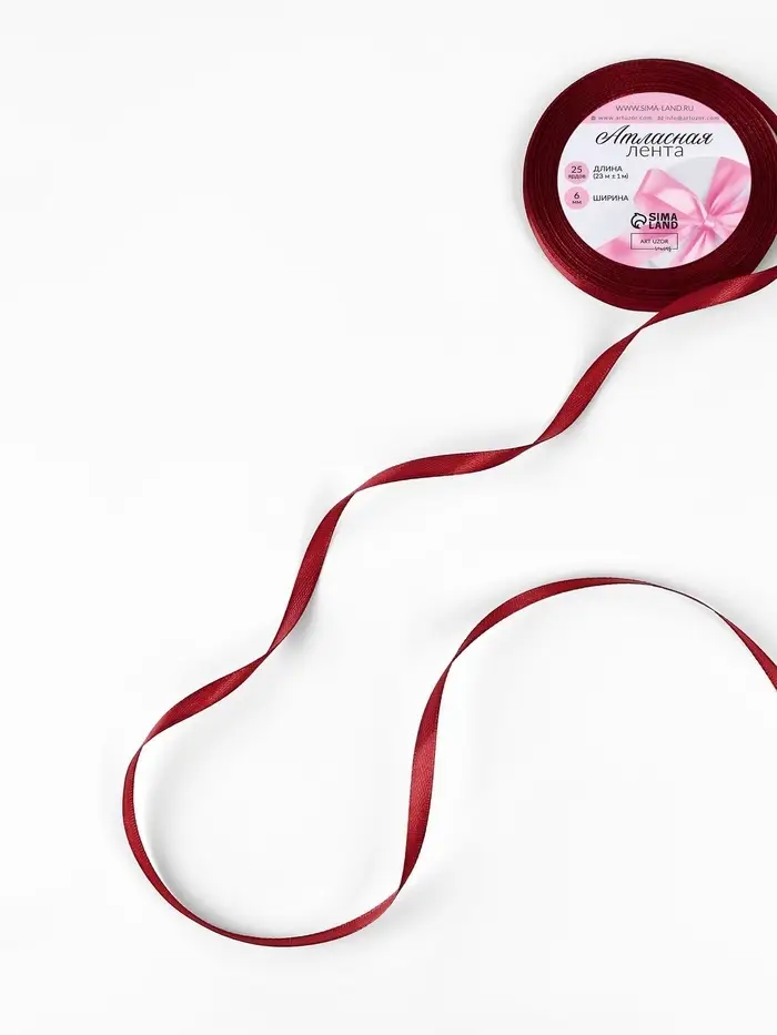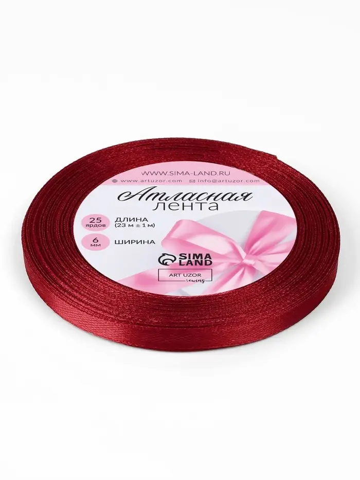 Лента атласная, 6 мм × 23 ± 1 м, цвет винный №165