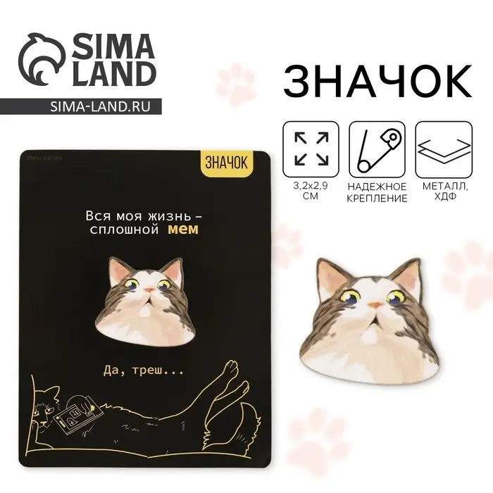 Значок деревянный «Котяо», серия мемы 3,2 х 2,9 - яркий элемент, который порадует любого.