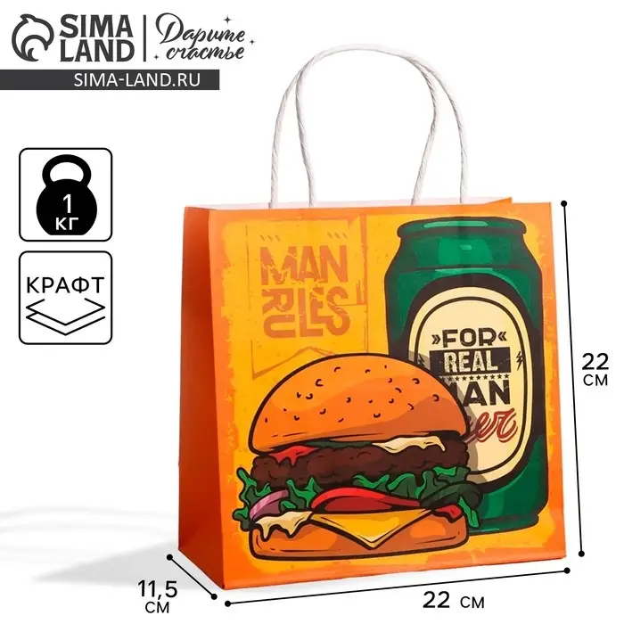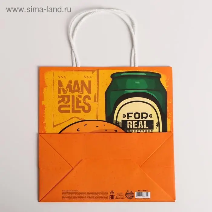 Пакет подарочный крафтовый, упаковка, «Man rules», 22 х 22 х 11 см
