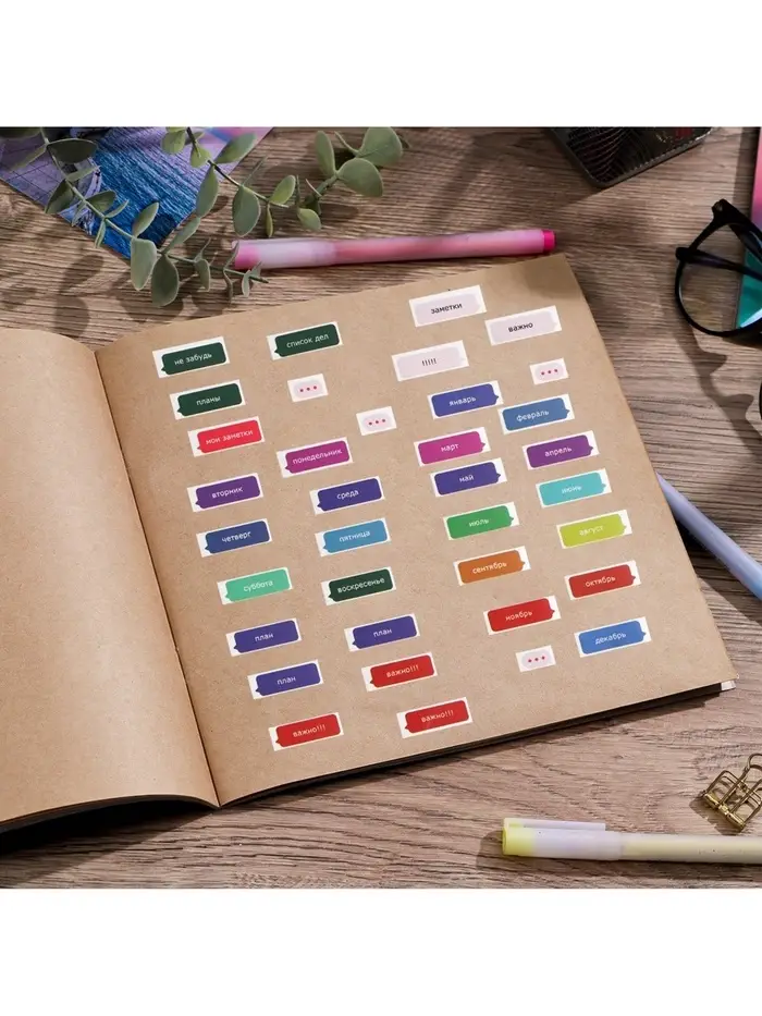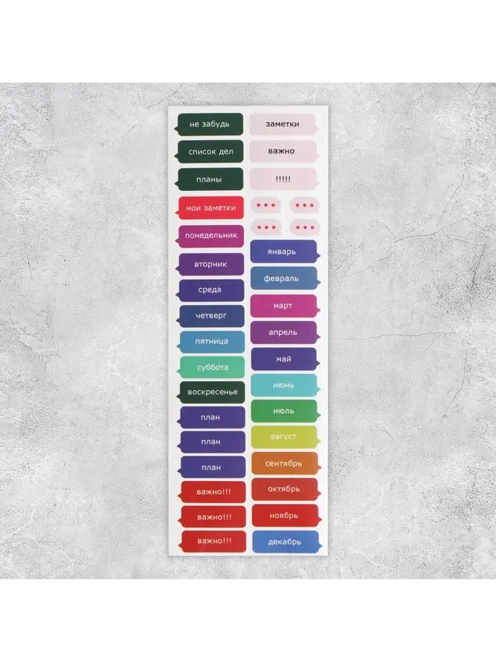 Наклейки бумажные на подложке «Заметки», для ежедневника 6 × 21 см