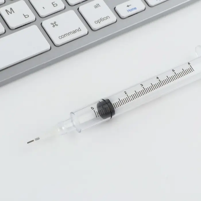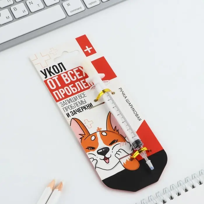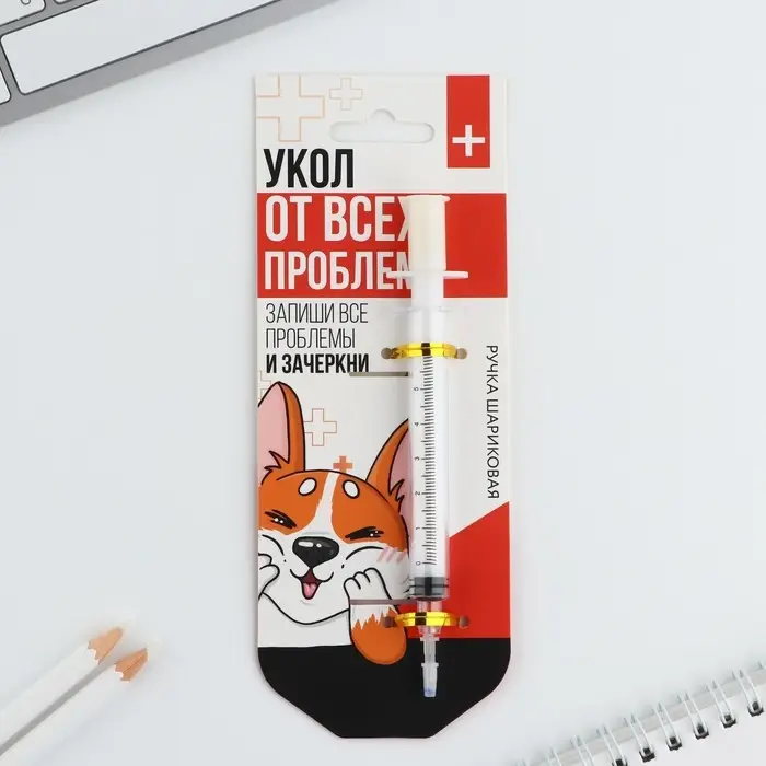 Ручка прикол шариковая синяя паста, шприц «Укол от всех проблем», на подложке