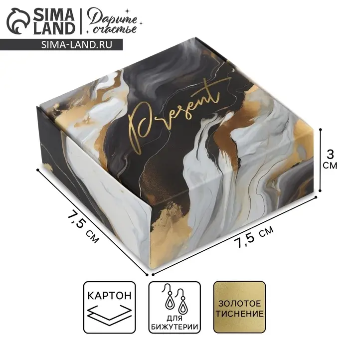 Коробка под бижутерию «Чёрный мрамор», 7.5 х 7.5 х 3 см