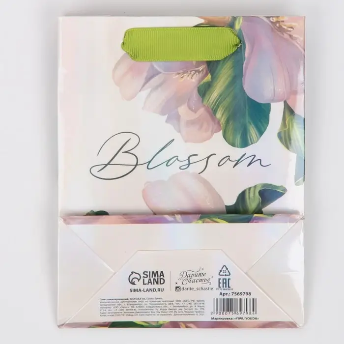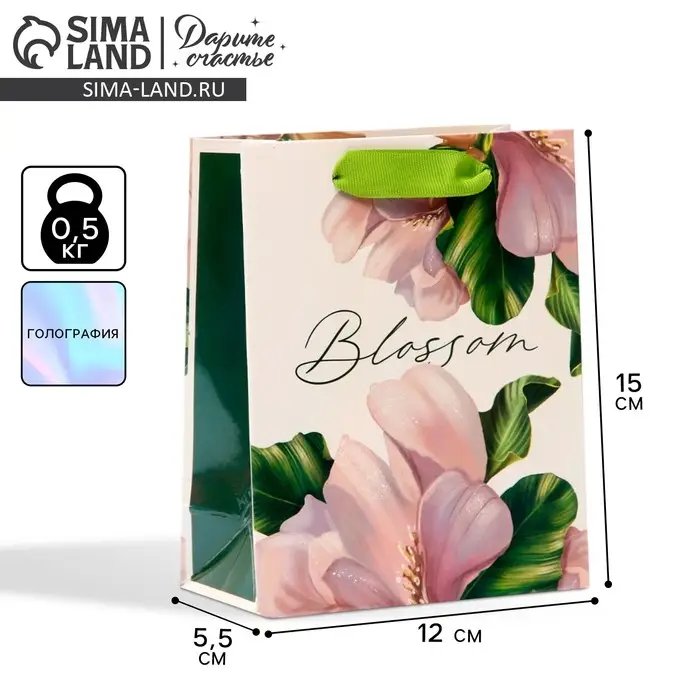 Пакет подарочный ламинированный, упаковка, «Цветение», радужная голография, S 12 х 15 х 5.5 см