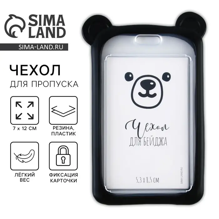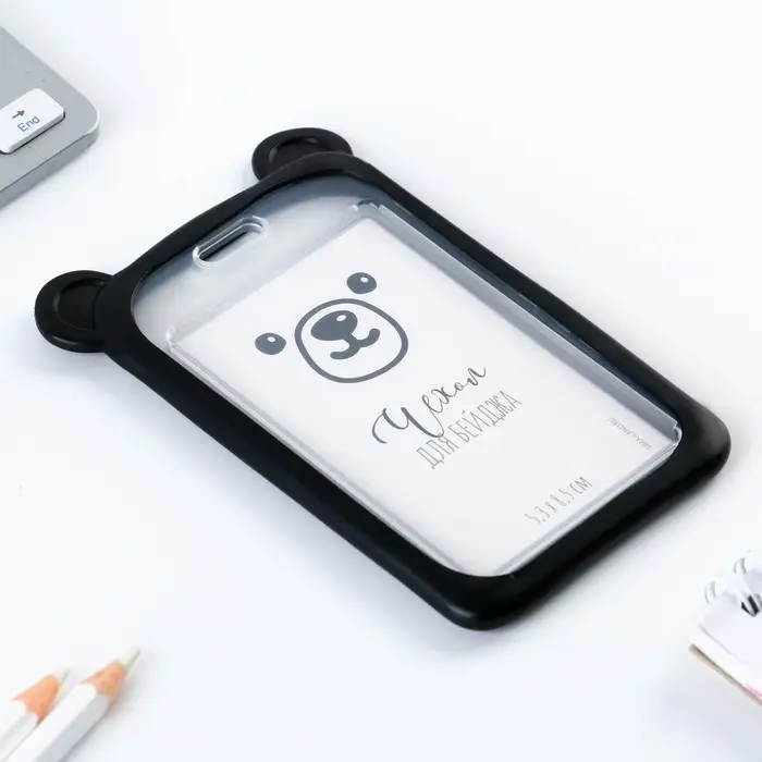 Чехол для бейджа с ушками «Мишка», 7 х 12 см