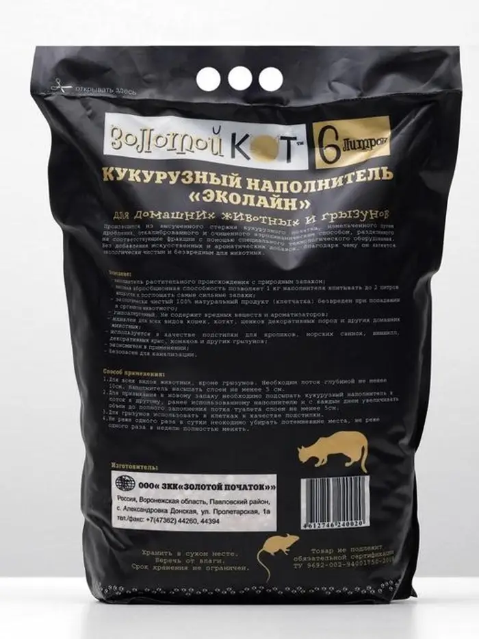 Наполнитель кукурузный "Золотой кот", 6 л