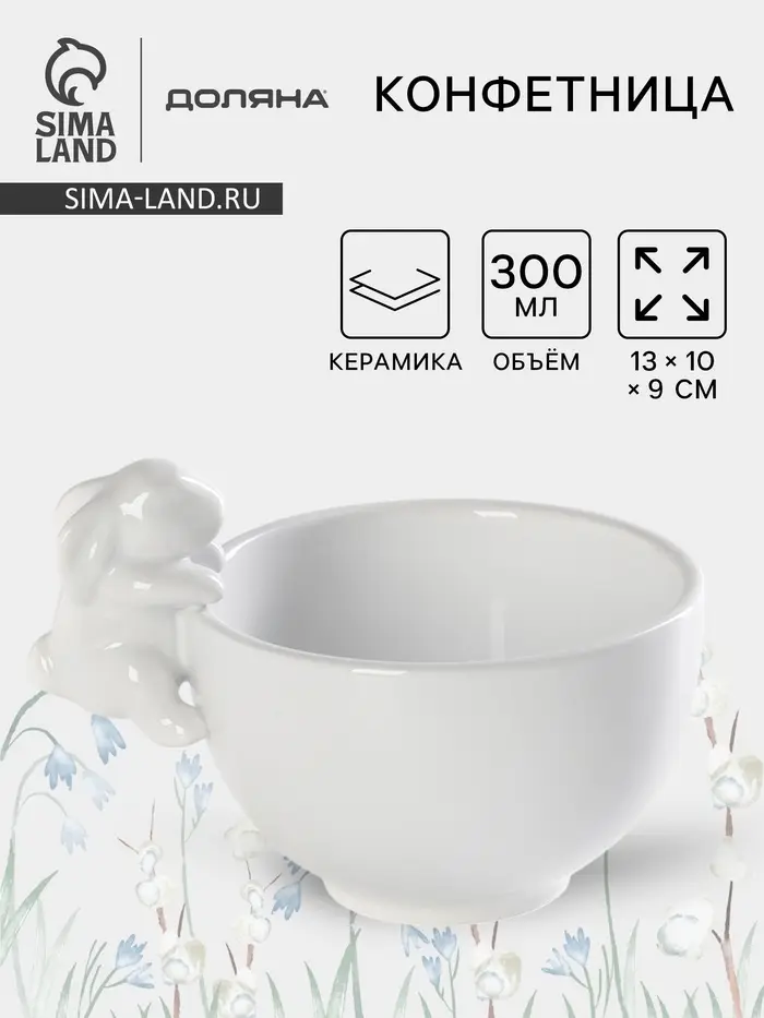 Конфетница Доляна «Зайка», 13×10×9 см, доломит, белая