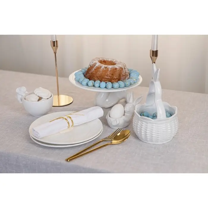 Конфетница SL Home «Пасхальные кролики», 17×10.5×17 см, доломит, белая