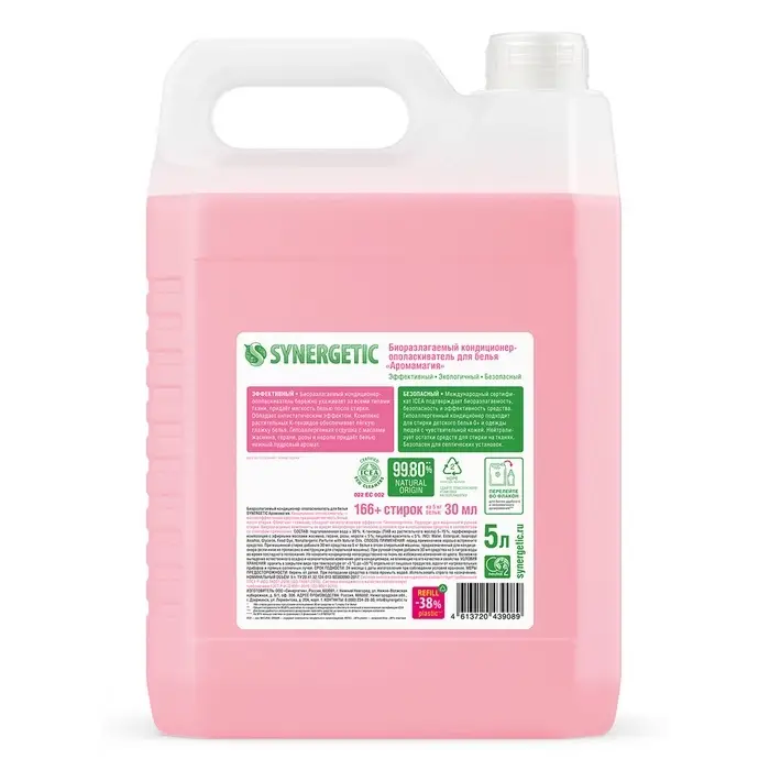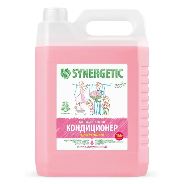 Биоразлагаемый кондиционер-ополаскиватель для белья SYNERGETIC "Аромамагия" – высокоэффективное средство, бережно ухаживающее за всеми типами ткани, в том числе деликатными, и придающее особую мягкость и нежность белью после стирки.