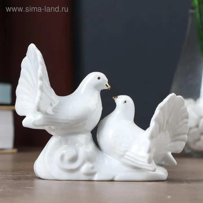 Сувенир керамика под фарфор 2 голубка 12,5*9*6 см, стразы