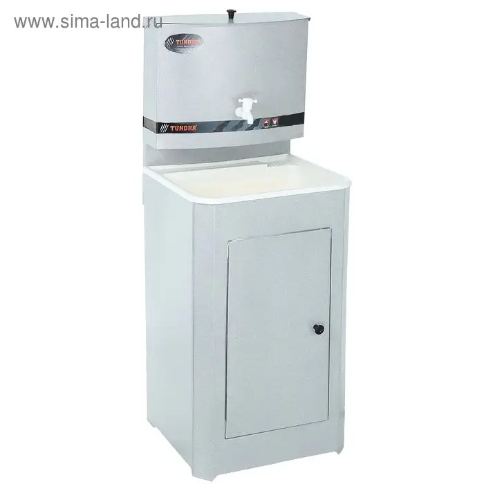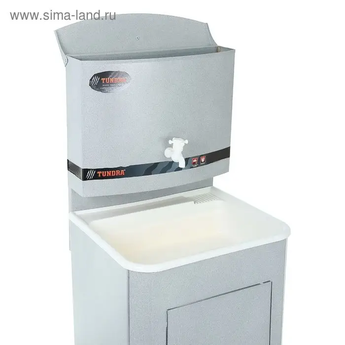Умывальник TUNDRA — отличное приобретение для дачи, гаража, мастерской или других мест без центрального водоснабжения. Металлическая конструкция серого цвета проста в эксплуатации и уходе, обладает высокой износоустойчивостью. Раковина выполнена из пластика, а на бак для воды нанесено невосприимчивое к коррозии запатентованное покрытие.